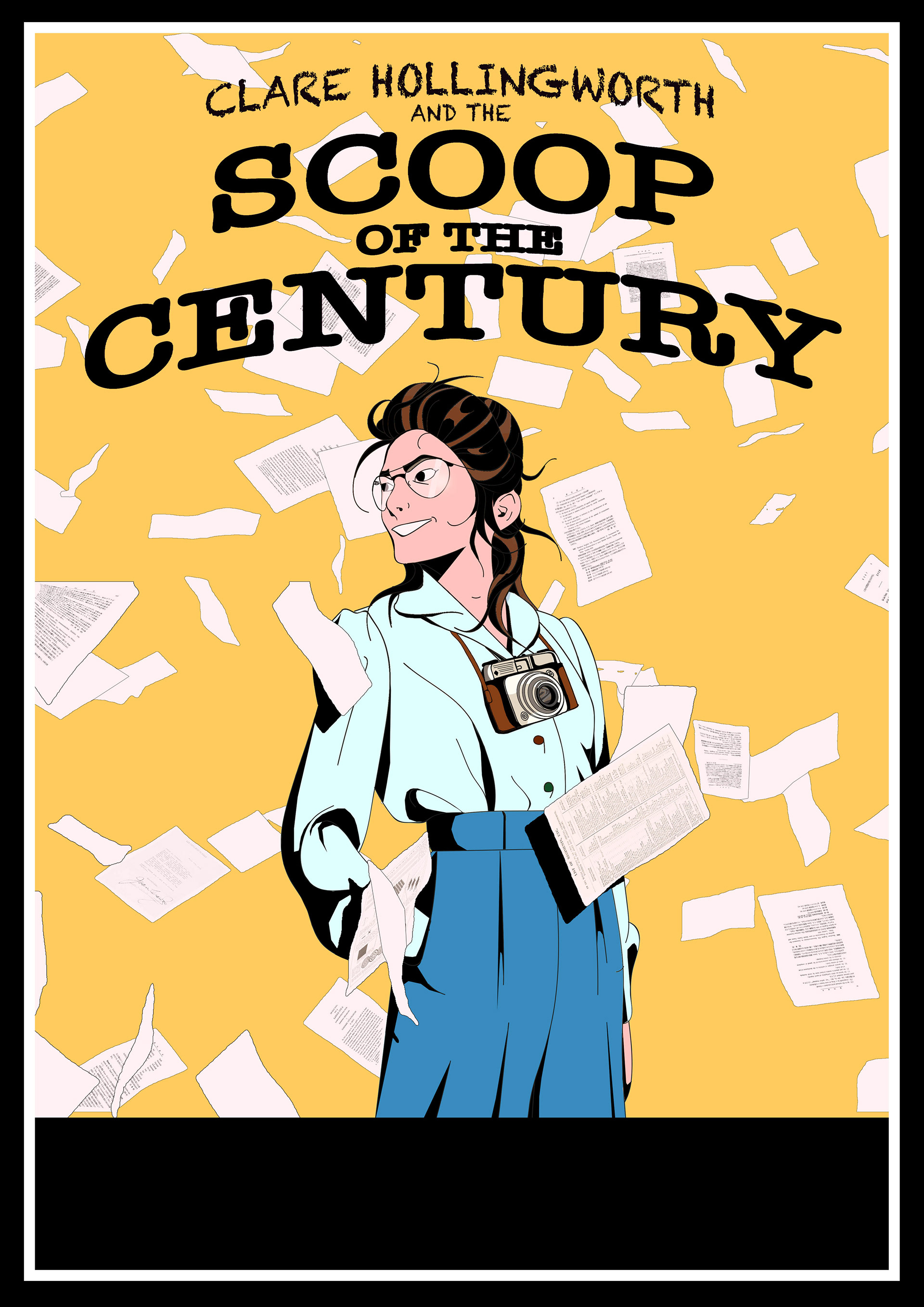 Poster design and illustration for 'Clare Hollingworth & the Scoop of the Century' by Paddleboat Theatre Co.